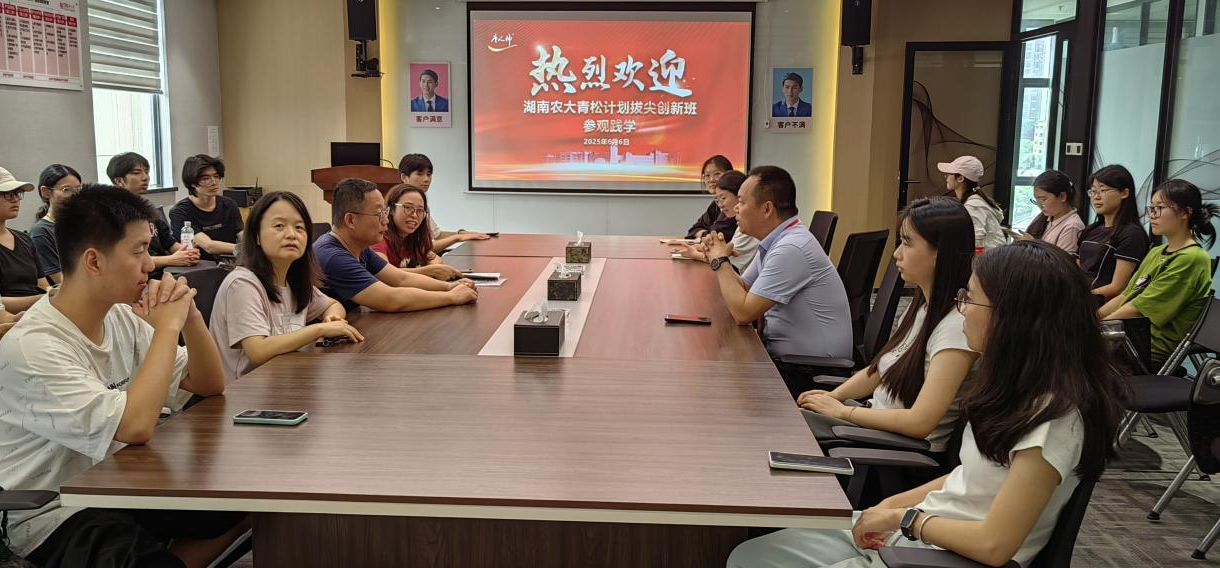 此外,集团还特别安排了研发中心、技术部的专业人员与师生们进行座谈交流。研发人员分享了唐人神集团在产品研发、工艺创新以及应对行业挑战方面的理念与实践,并介绍了当前生猪养殖、肉制品加工行业的热点技术和发展趋势。同学们纷纷表示,与一线研发人员的直接对话,让他们对理论知识的实际应用和未来研究方向有了更清晰、更落地的认识,极大地激发了在专业领域深耕探索的热情。王远亮表示,此次唐人神之行此次参观活动是“青松计划”拔尖创新班实践教学的重要环节,是深化产教融合、培养应用型创新人才的关键举措,加深了学院和唐人神集团的交流与合作。