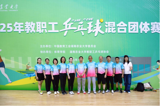 (食品科学技术学院 夏伟秀)在刚刚落幕的湖南农业大学2025年教职工乒乓球混合团体比赛中,食品科学技术学院代表队团结一心,奋勇拼搏,凭借出色的技术和顽强的意志,在众多强队中脱颖而出,取得了佳绩。充分展现了学院教职工昂扬向上的精神风貌和卓越的竞技水平。