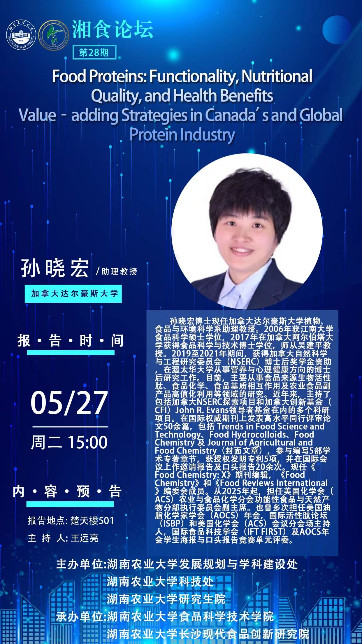 湘食论坛 第二十八期(Food Proteins: Functionality, NutritionalQuality, and Health BenefitsValue - adding Strategies in Canada' s and Global Protein Industry)