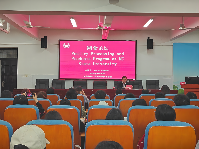 (食品科学技术学院 夏伟秀 马金蓉)2024年4月10号上午,食品科学技术学院第十六期湘食论坛在楚天楼501举行。本期论坛邀请了美国北卡罗来纳州立大学家禽系李艳副教授作为主讲嘉宾,开展了“肉质、蛋白质功能和工艺改进”为主题的学术讲座。讲座由食品科学技术学院院长沈清武主持。