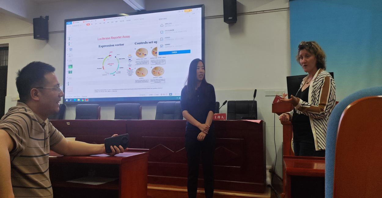 在交流讨论环节,与会老师和同学们针对控制microRNA的代谢等相关问题进行了交流,Zoia博士逐一解答,罗洁教授对Zoia博士的精彩讲述表示感谢,并鼓励同学们更多的关注和学习硒和硒蛋白对人体健康影响方面的知识。