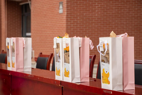 学院领导及老师为考研代表们赠送了精心准备的“考研大礼包”,礼包内有:一举夺“魁”的向日葵,“巧克”难题的巧克力,“高中”的粽子,心想事“成”的橙子和冬日的暖宝宝。一个个礼包充分传递了食科学院对考研学子的关怀,一句句问候为考研学子送去关心与温暖,一声声祝福不断坚定同学们的考研信心。