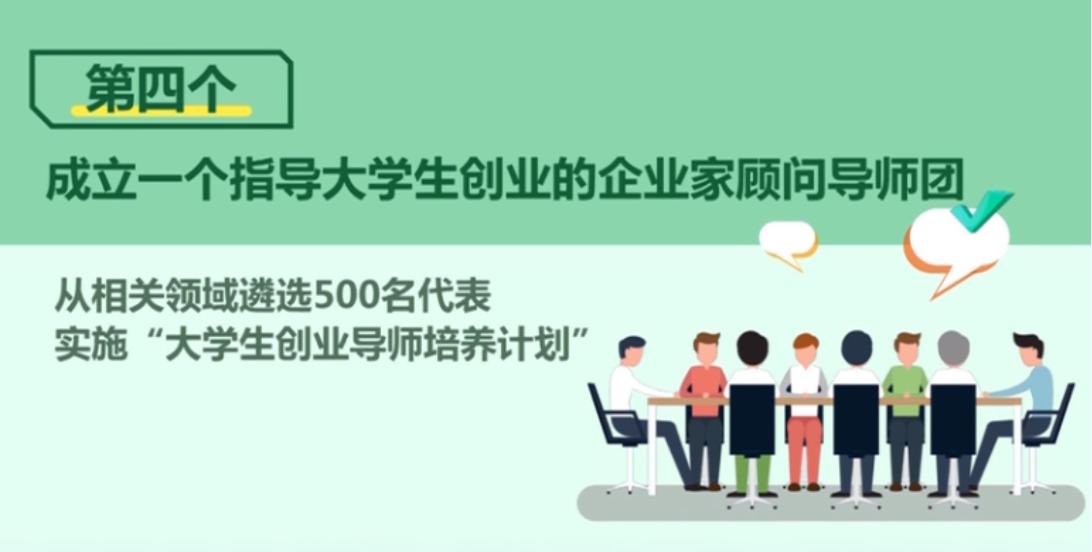 成立一个由 500 名左右责任心强、实践经验丰富的代表组成省级大学生创业导师团,为创业者提供精准指导。