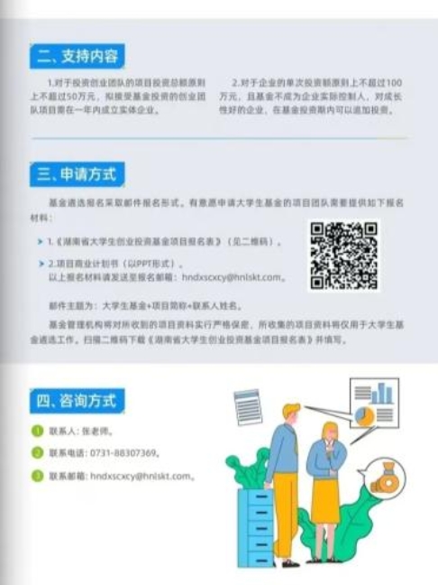设立一支首期规模 5 亿元的创业投资基金,为大学生主导的在湘创业初期项目提供启动资金。同时,高校毕业生个人创业可申请最高 30 万元的创业担保贷款,合伙创业的最高额度可达 400 万元。