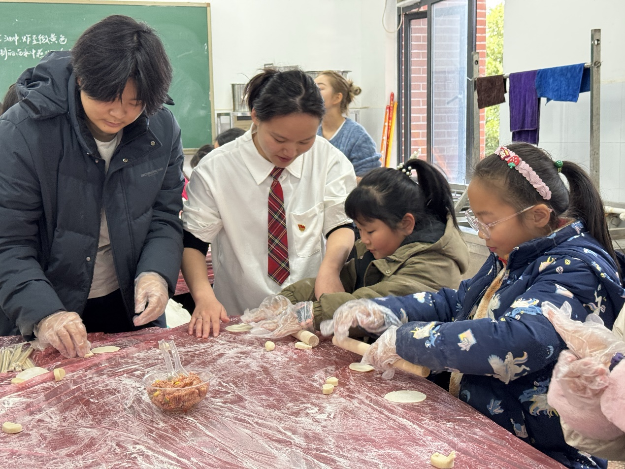 在食品科学技术学院的实验室里,师生们欢聚一堂,共同动手制作手工饺子。大家围坐在一起,擀面、包馅、捏褶,每一步都充满了乐趣与挑战。志愿者们耐心指导孩子们如何制作出完美的饺子,而孩子们则充分发挥创意,制作出形状各异、独具特色的饺子作品。这一环节不仅锻炼了孩子们的动手能力,还让他们在实践中深刻体会到了食品制作的乐趣和营养搭配的奥秘。