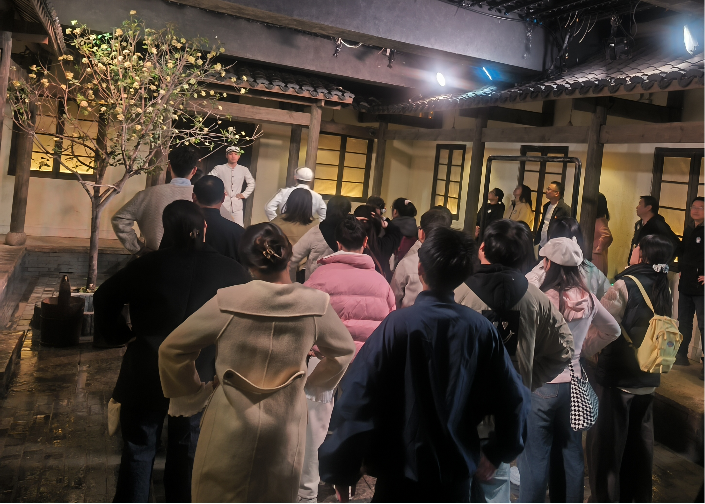 课堂环节后,党员们跟随“老师”的指引,体验了当年青年的课间操, 整齐的步伐、有力的动作,生动诠释了“文明其精神,野蛮其体魄”的深刻内涵。在图书馆场景中,大家驻足观摩复刻的革命先辈批注文字、征友启事等珍贵资料,近距离感受先辈们在青年时期追求真理、探寻救国道路的执着与热忱。
