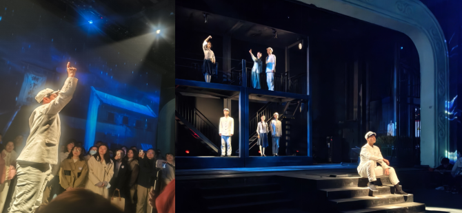 最令人动容的是尾声的舞台演绎:当“内忧外患”“誓死力争”的标语在全息幕布上流转,演员们以青年之姿重现“寻求新中国出路”的辩论与呐喊,光影与肢体交织间,百年前的青春血气直抵人心。