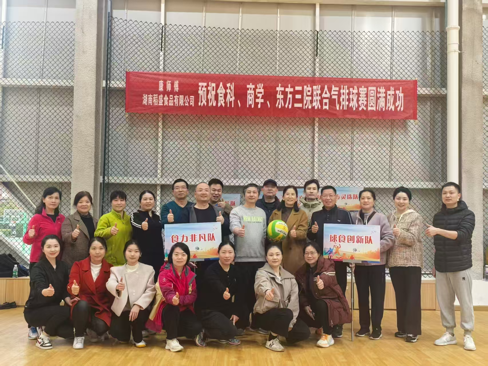(食品科学技术学院 刘熙孟)3月28日下午,由食品科学技术学院、商学院、东方科技学院联合主办的教职工气排球赛在学校气排球馆火热开赛。本次活动由康师傅和湖南稻盛食品有限公司两大知名企业冠名赞助,吸引了三院共6支队伍参赛。