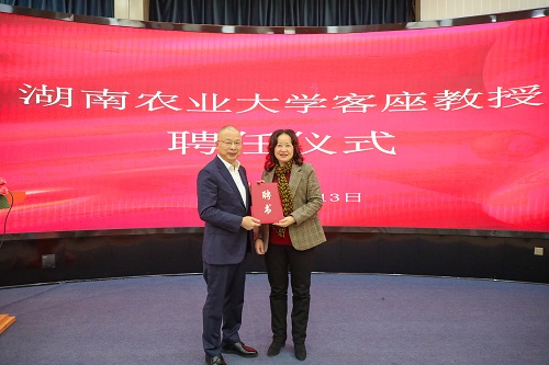 讲座开始前,张立为彭凤祥颁发湖南农业大学客座教授聘书,并举行食励讲堂揭幕启动仪式,张立等为食励讲堂正式启动开幕启航。