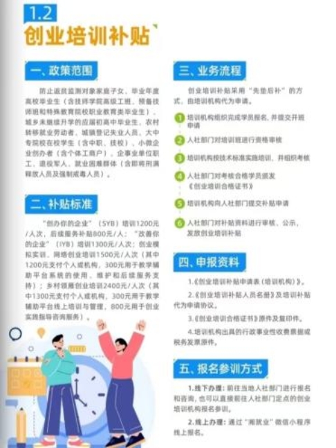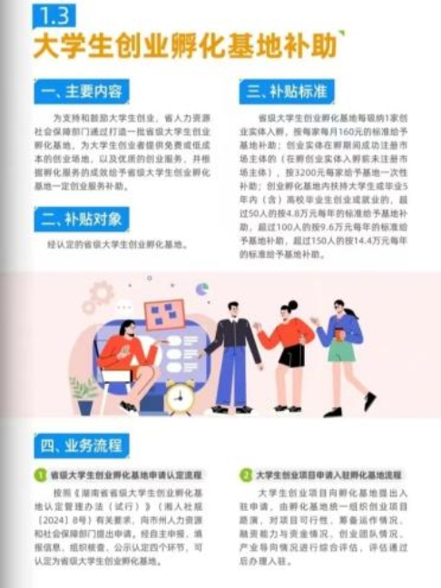 本次创业补贴主要有一次性创业补贴、创业培训补贴、大学生创业孵化基地补贴以及湖南省重大科研基础设施和大型科研仪器开放共享四个类型。